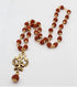 - All beads and Brass caps are strung together in a strong brass wire .